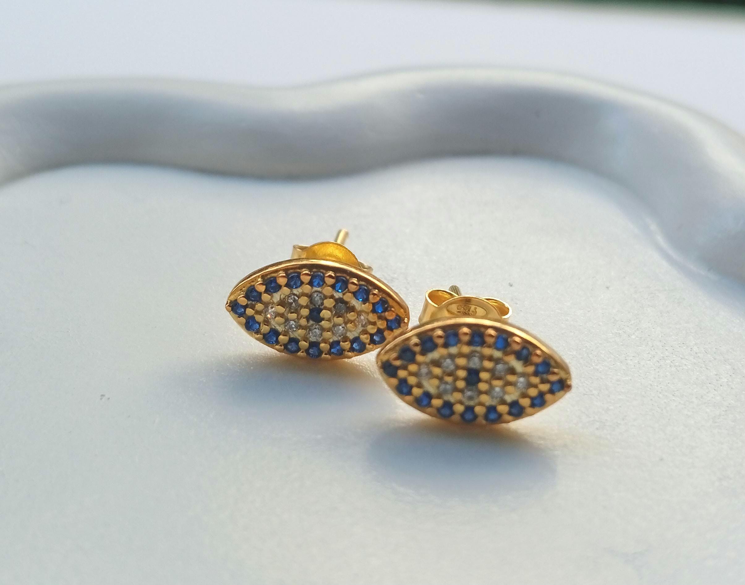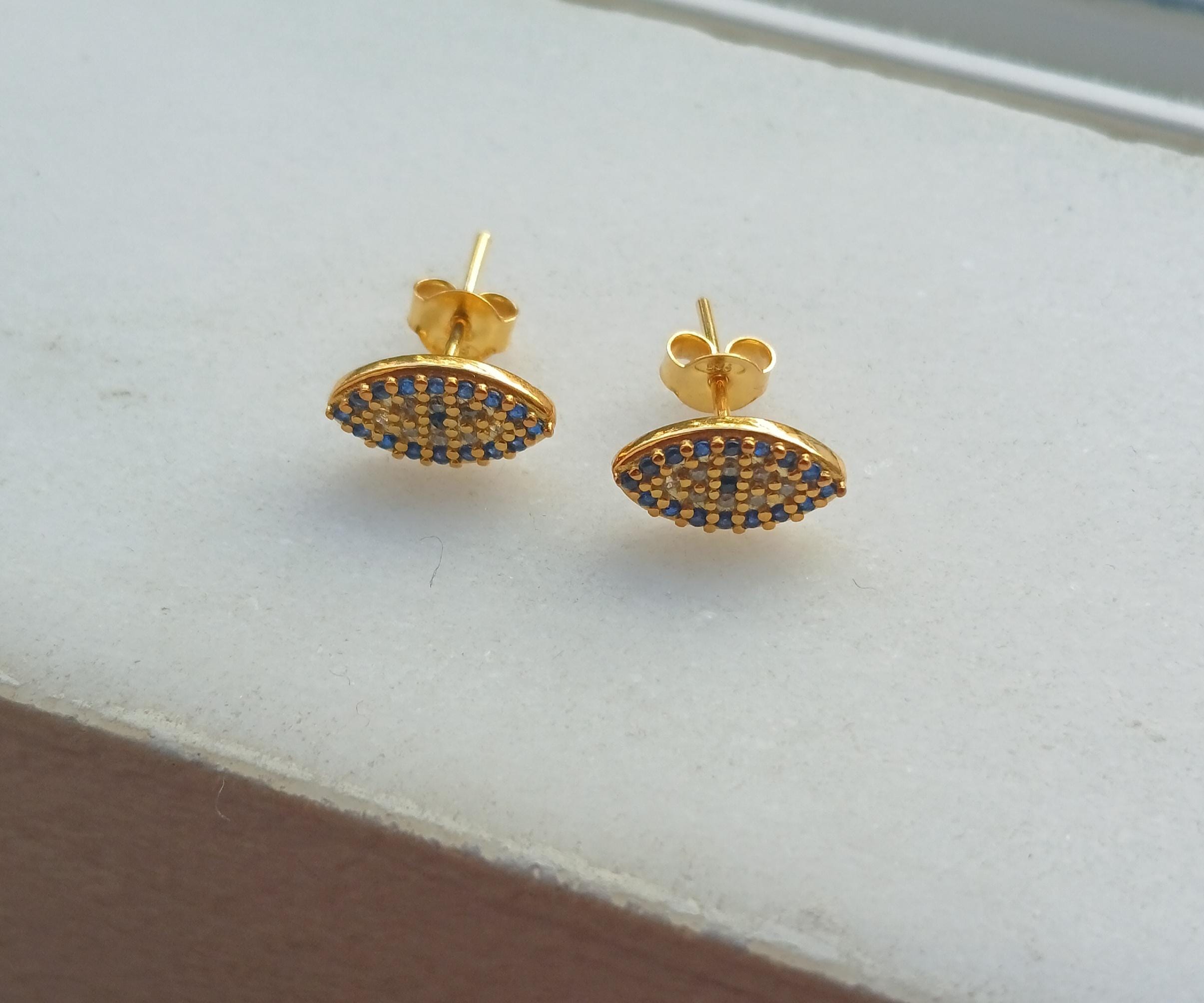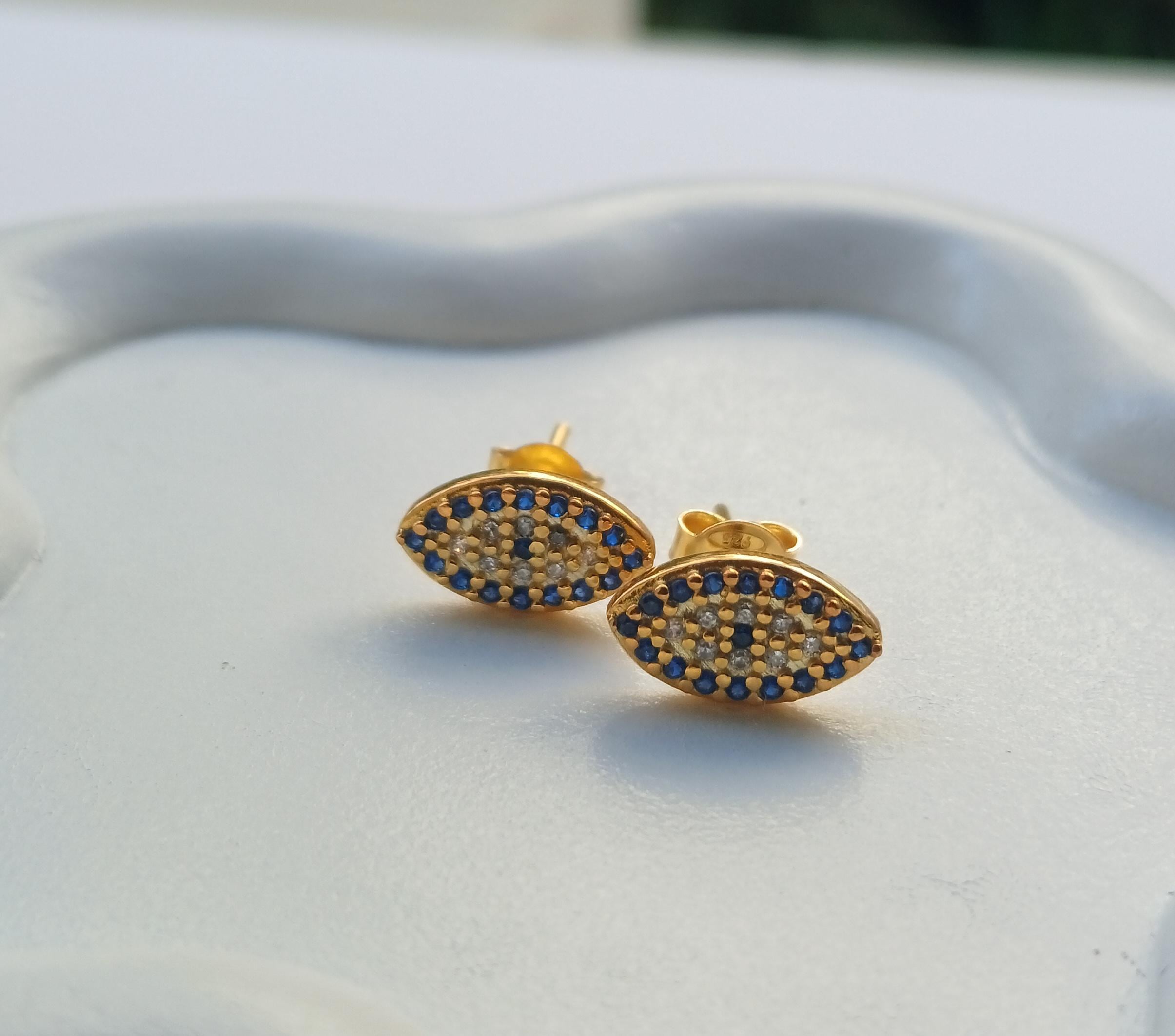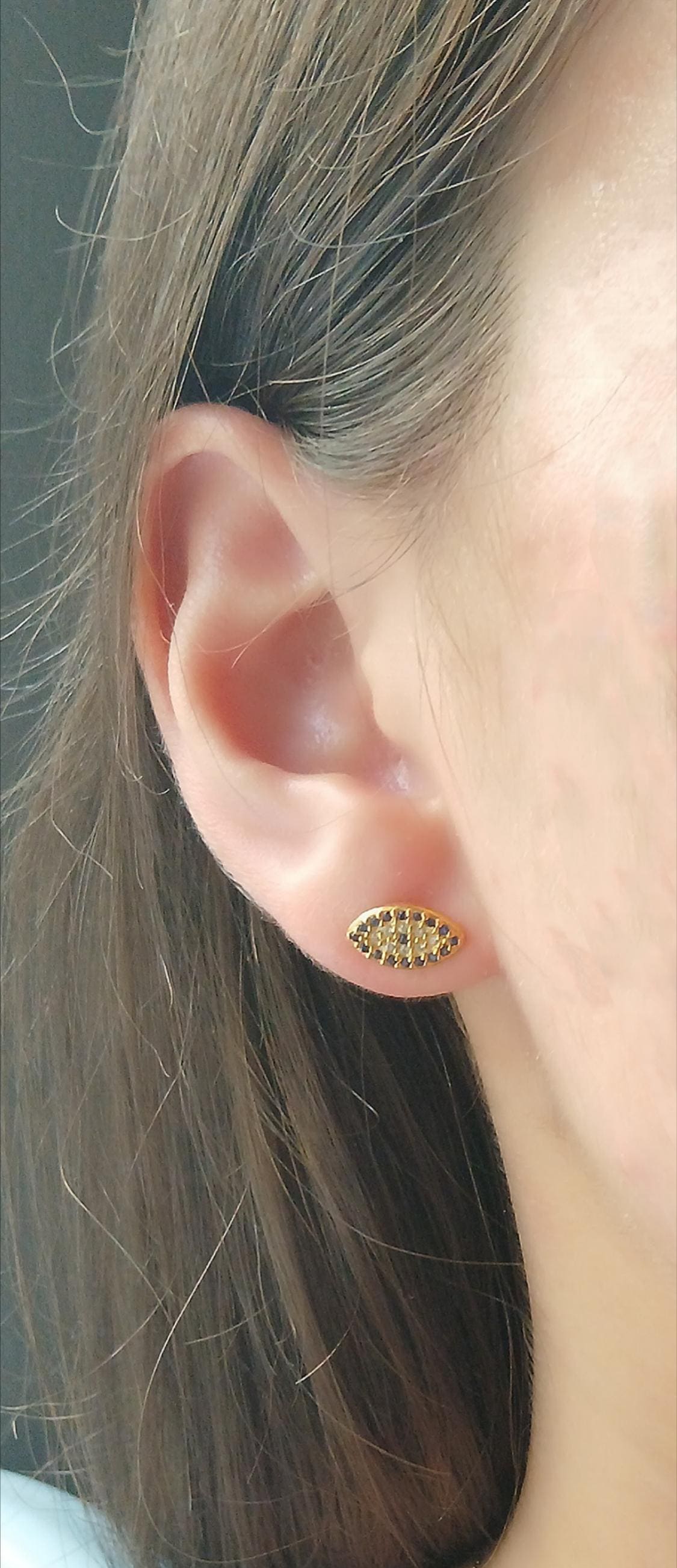 14k gold plated, evil eye earrings, made of cubic zirconia beads. Elegant&dainty push back earrings, appropriate both for everyday and formal looks. Our best-seller evil eye in stud earrings.