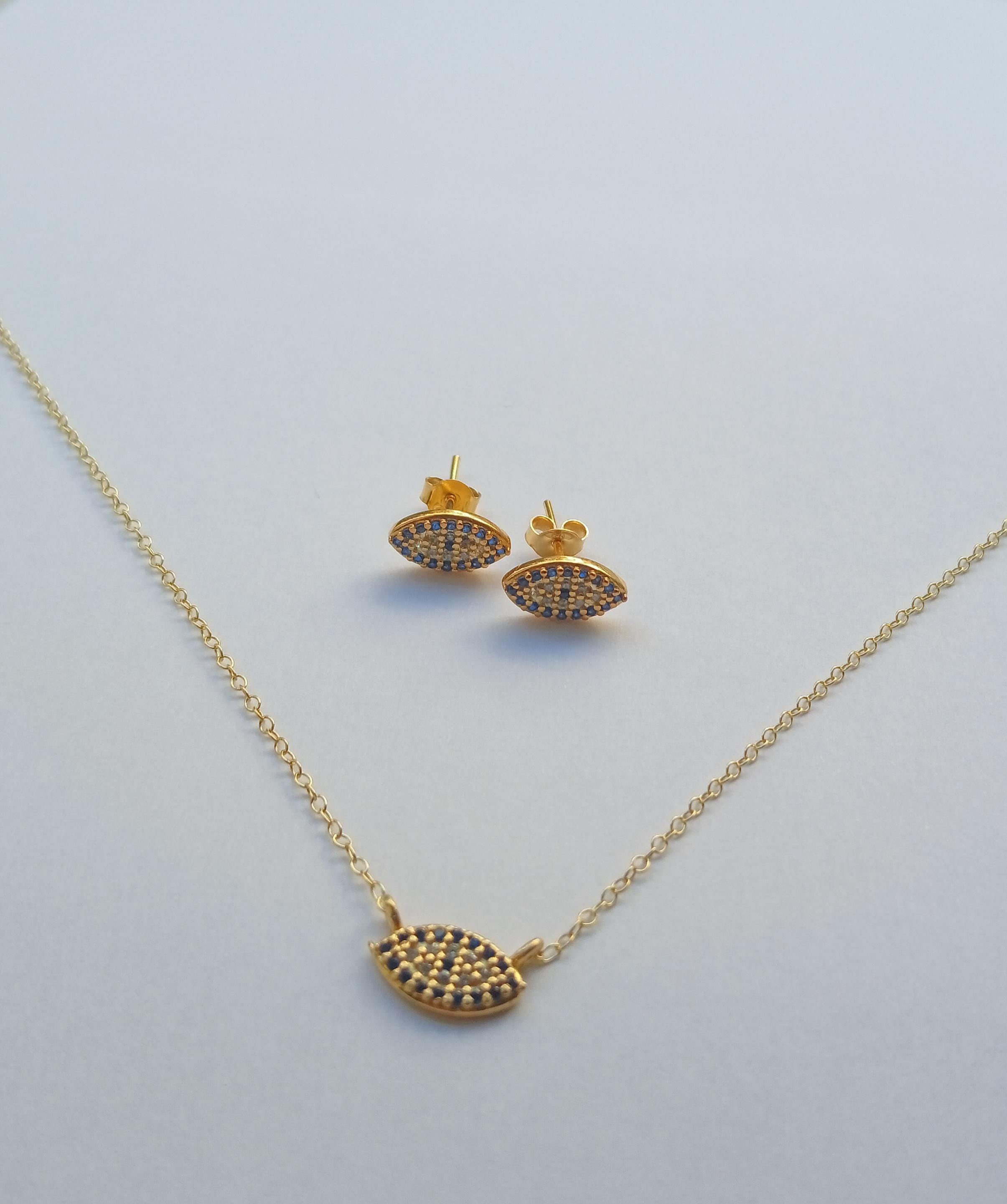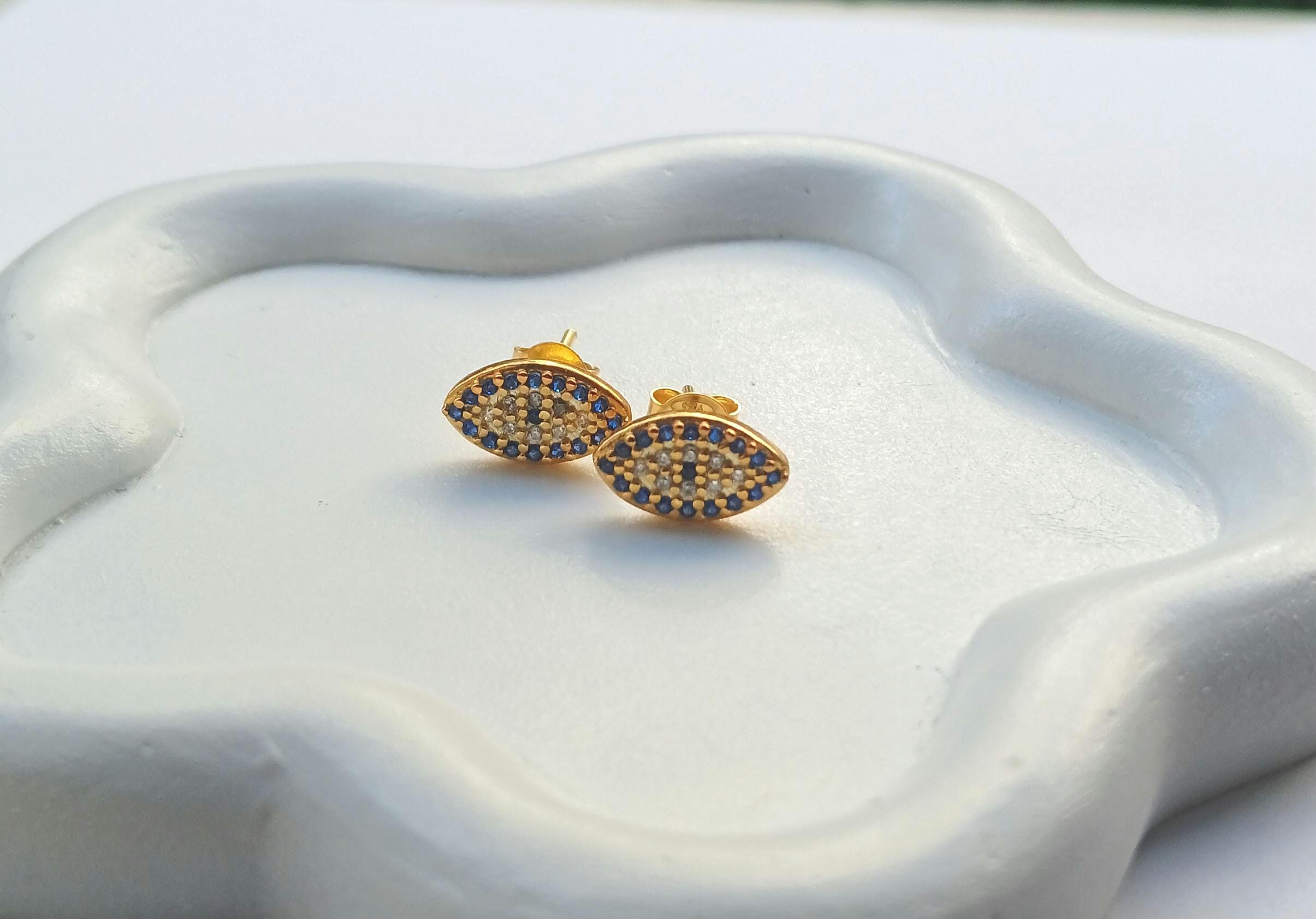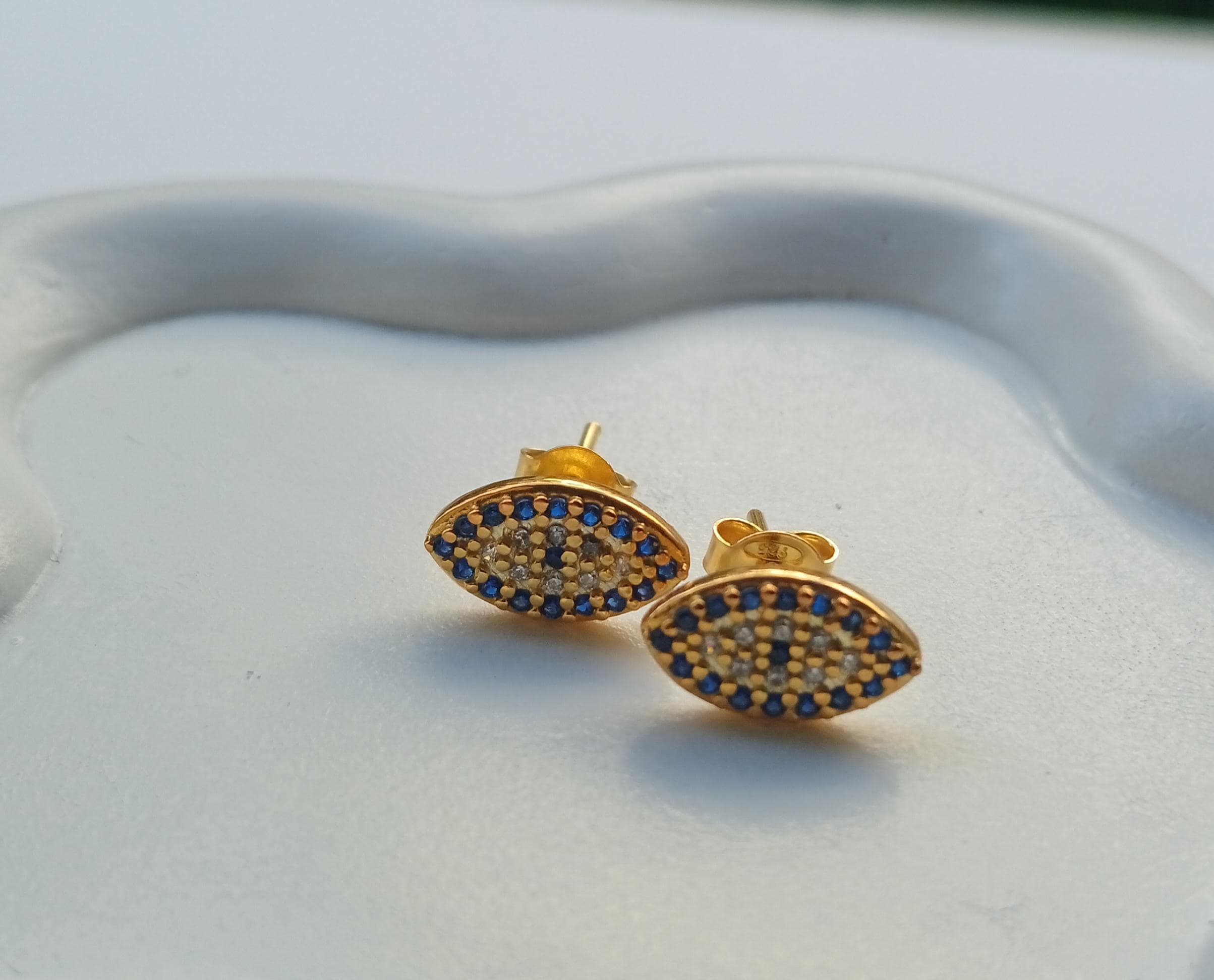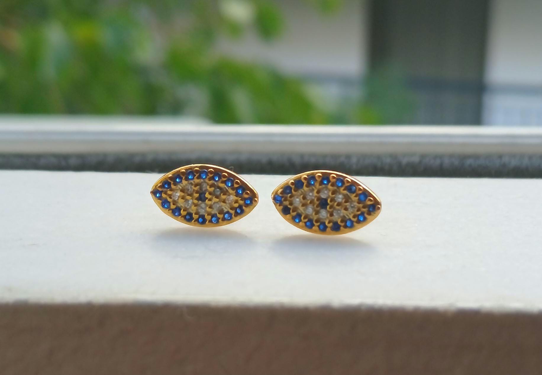 14k gold plated, evil eye earrings, made of cubic zirconia beads. Elegant&dainty push back earrings, appropriate both for everyday and formal looks. Our best-seller evil eye in stud earrings.